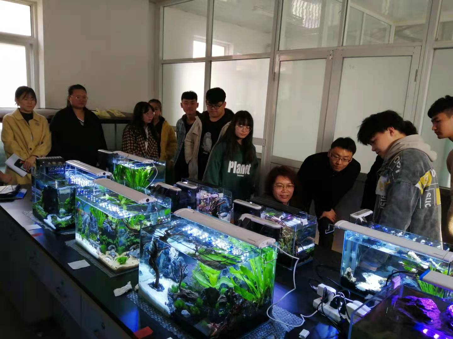 本次比赛共有10支队伍参赛。参赛各团队前期首先精心挑选了造景素材,共同讨论缸内景观设计,利用石材,木材,水草等其他水族造景物品,对鱼缸内进行造景装饰,并且学习了鱼缸内设备的安装与调试。在比赛现场,评委老师结合每组造景进行现场问辩、点评和打分,并针对同学们提出的问题进行了现场解答。最终评出一、二、三等奖若干。大赛的顺利举行,不仅让同学更广度的了解水族科学与技术这门专业,也为学生拓展了视角,深刻了解“做中学、学中做”的意义所在。明年,学院将总结第一届水族造景大赛的经验和不足,筹备第二届大赛,届时将集中展览作品,为我校广大学生提供一个科普教育平台,让更多同学了解水族造景比赛,体味其中无限乐趣。