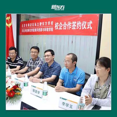 在北京市海淀区私立新东方学校,领导致辞后共同观看了双方的宣传视频,并就学生的培养、课程建设、教育实习、就业及未来发展等进行了深入探讨,最后双方进行签约。