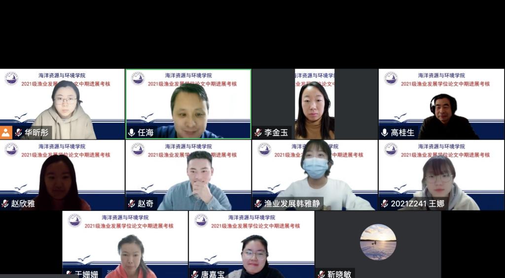 11月19日上午,今年会官网召开2021级渔业发展专业硕士研究生中期考核报告会。此次报告会由任海、高桂生、靳晓敏、于姗姗等四名教师组成考核组,任海副教授主持报告会。