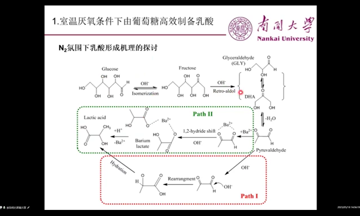 李陆杨博士毕业于南开大学,报告的题目为“纤维素及其衍生糖制备乳酸的绿色过程研究”报告,主要介绍了室温和球磨两种不同条件下葡萄糖制备乳酸的不同效率的研究,详细阐述了不同影响因素,如浓度、温度和催化剂用量等对乳酸产率的影响。报告结束后,参加会议的科研人员与李陆杨博士就相关问题进行了深入的讨论,与会人员从中受益匪浅,反响很好。这次学术报告的召开为以后广大师生之间的科研合作打下了良好的基础。