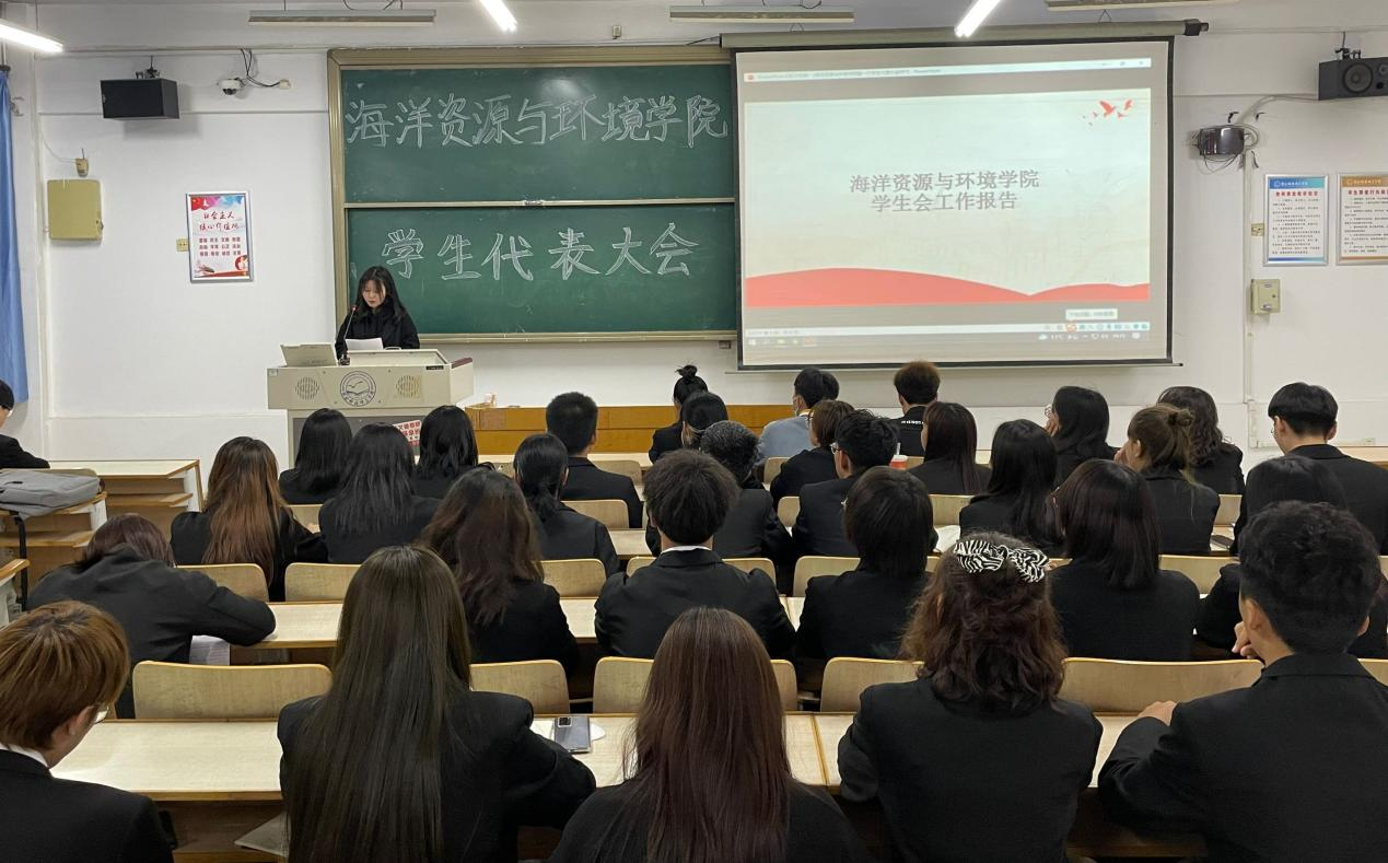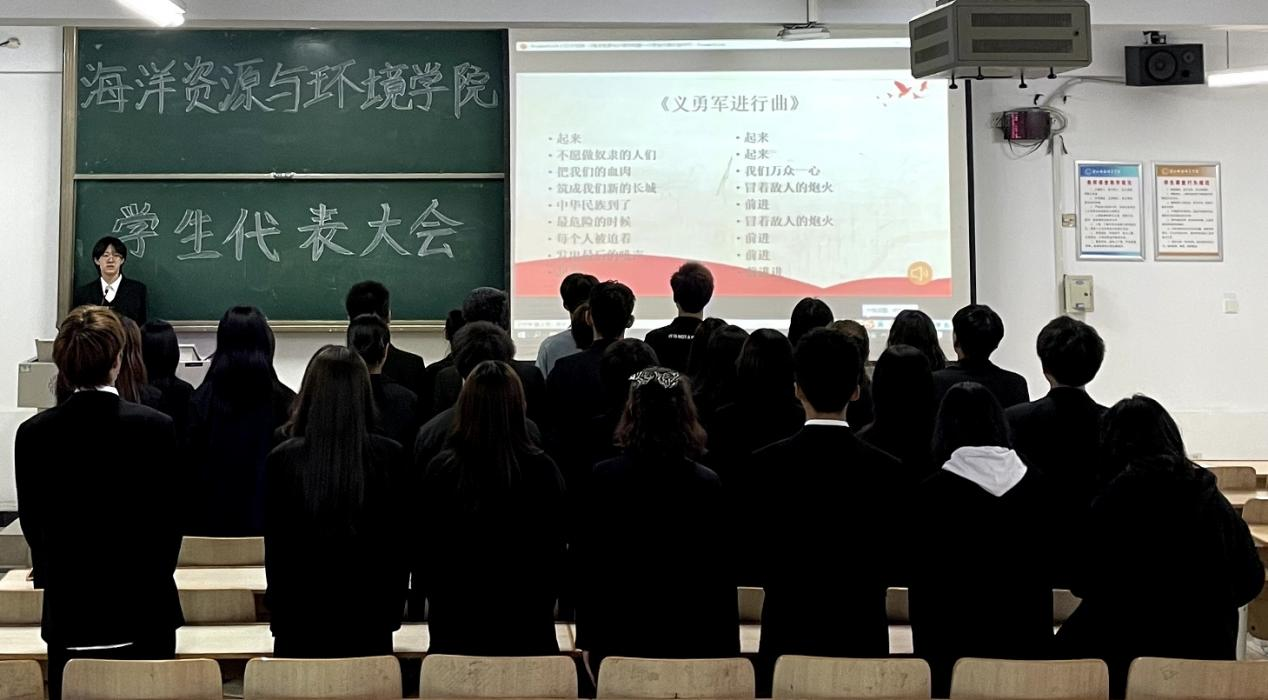 晚上19时,大会开幕式暨全体会议在雄壮的国歌声中开始。谷晓博代表海洋资源与环境学学生会主席团作《2020-2021学年学生会工作报告》。与会代表对工作报告进行了分组讨论,并通过报告决议。随后全体代表选举产生了学生委员会成员和今年会官网主席团成员、各部门负责人。