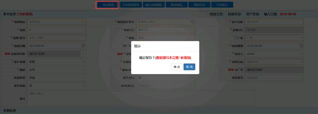 选择资产登记类型:固定资产、低值耐用品,再选择需要录入的资产卡片,资产卡片填写完整后,点击“保存”按钮。