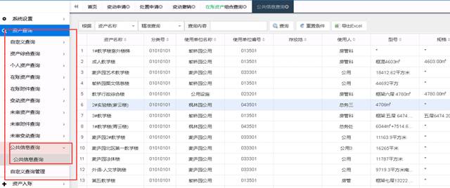 可以按教育部16+1分类号查询资产信息,并可将查询结果导入到EXCEL中进行打印输出。