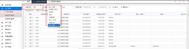该功能可以任意组合查询资产条件,并可将查询结果导入到EXCEL中去制表打印结果,