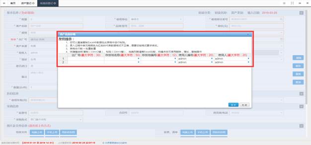录入资产的批量大于1时,会要求填写附单,附单的内容可以下拉复制,也可以在Excel表中把填写的数据整理好,再粘贴进去,填写完成后保存,继续填写其他必填项,最后保存提交审核。