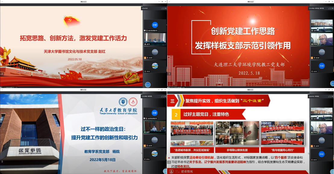 学习筑根基,交流促发展。为了进一步提升党支部书记教育培训工作的针对性和有效性,推动党建提质增效,促进工作创新发展,5月18日,bat365官网教工党支部、机关教工党支部与天津大学图书馆文化与技术党支部、教育学系党支部以线上、线下相结合的方式开展交流共建活动,以样板支部辐射引领专任教师党员和机关教师党员提高政治站位,强化党建工作与事业发展深度融合。
